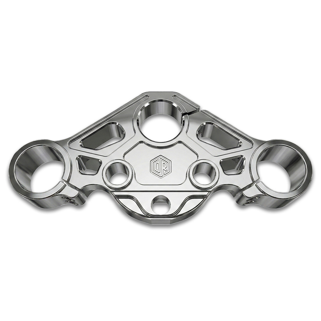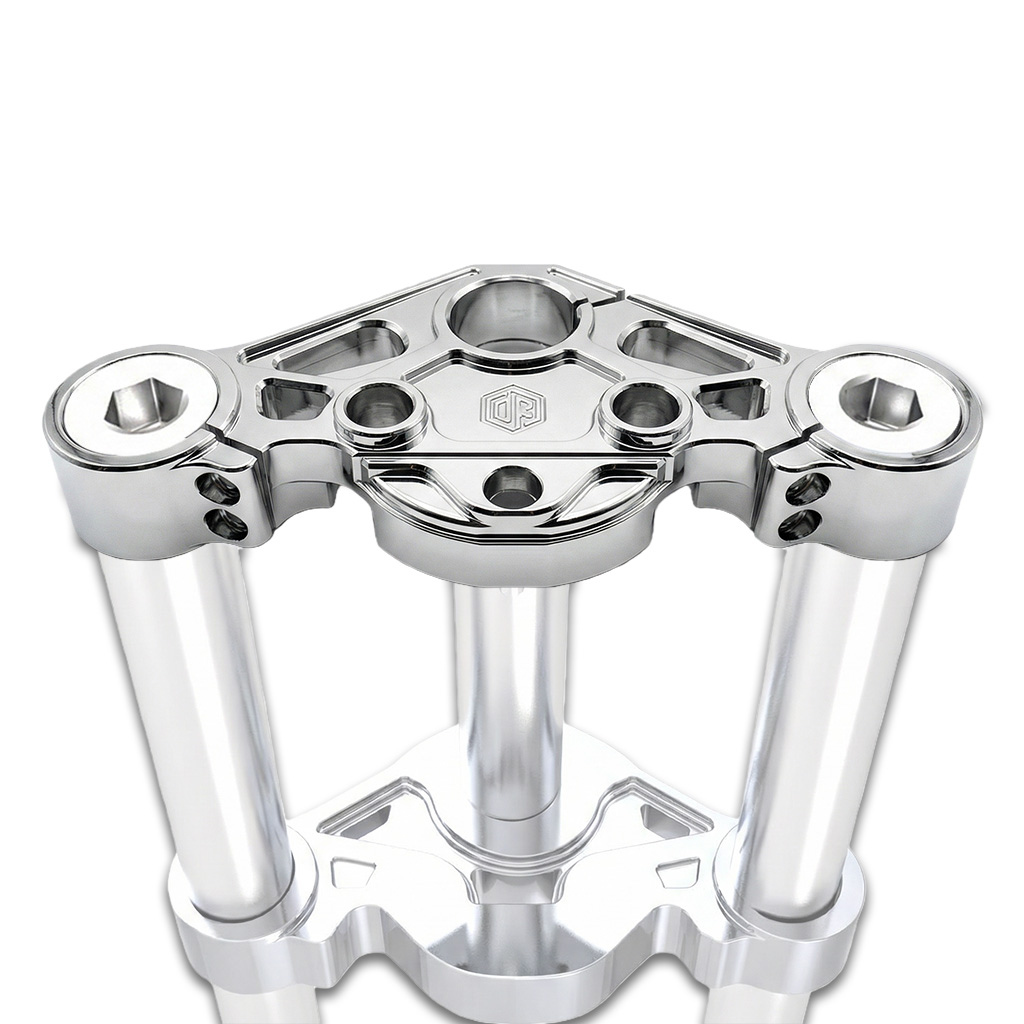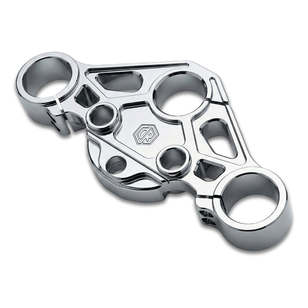 • Upper triple tree design preserves stock fork height and correct front-end geometry for confident, predictable handling
